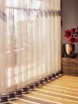 不透明ルーバーとルーバーの間に、シースルーのセンターレース記事を採用。従来のたて型ブラインドにはない光の演出と機能があります。回転操作により不透明ルーバーを開くと、センターレースが現れ、レースカーテンのような柔らかな光の演出ができます。 |