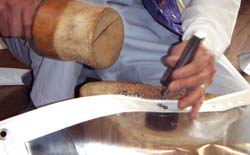 | 専用圧着器(170度)高温で耳と本体を結合 |